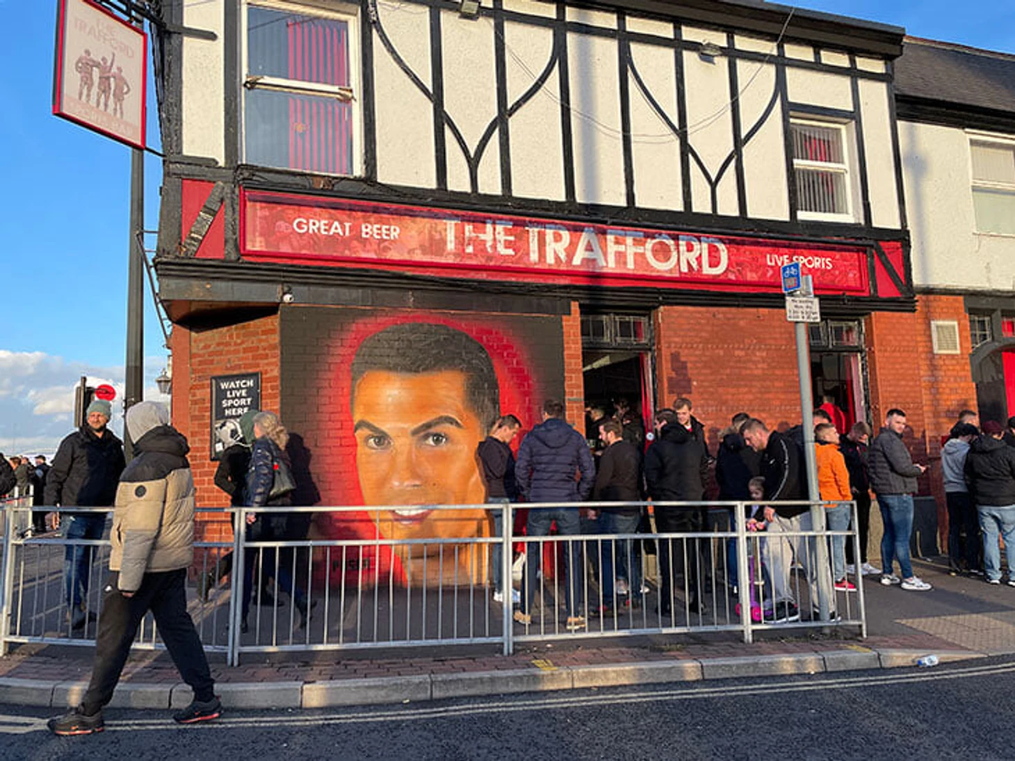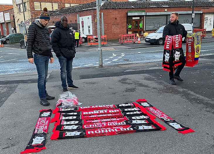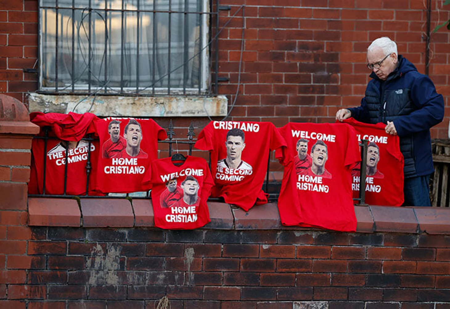 В комментариях к репортажам с матчей «МЮ» иногда возмущаются: «Хватит о вашем Роналду!» Увы, перестать говорить об одной из главных фигур АПЛ невозможно, тем более что в Манчестере ажиотаж не утихает. По дороге на «Олд Траффорд» привычную атрибутику предлагают формулировкой «матчевые шарфы с Роналду!».
