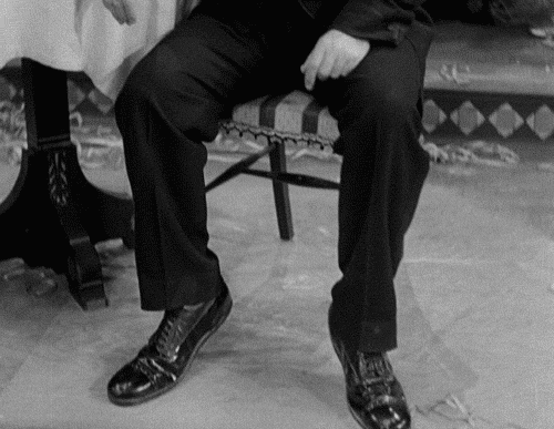 Кстати, чтобы походка персонажа была ещё нелепей, актёр в кадре носил ботинки на разные ноги!