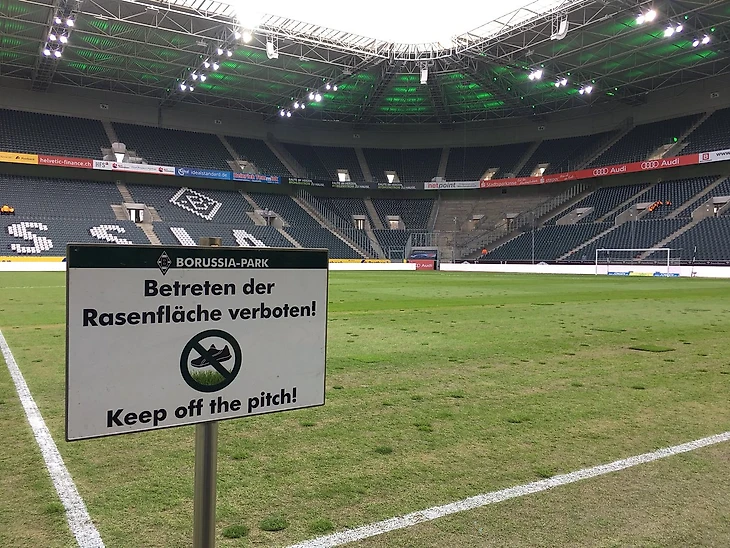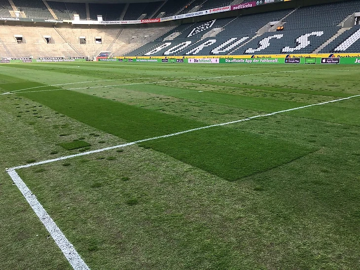 Просто вначале поле залило дождем, а потом ударили морозы. Руководство Гладбаха обещает к следующей игре с Бременом постелить новый газон.