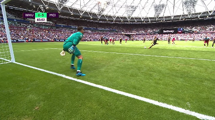 На 75-й минуте Рияд Марез красиво закинул в штрафную на Стерлинга, который принял мяч и перекинул вратаря. У арбитров вновь возникли вопросы, но на этот раз VAR показал, что все чисто. 3:0, дубль Стерлинга.