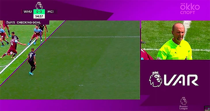 В матче «Вест Хэм» – «Манчестер Сити» (0:5) в АПЛ впервые задействовали систему VAR: арбитр Майк Дин дважды менял решения после подсказки видеопомощников.
