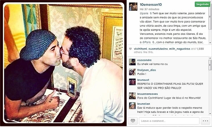 В 2013 году футболист «Коринтианса» Эмерсон опубликовал в своем Instagram фотографию, на которой он целовал друга. На следующее утро группа ультрас устроила забастовку на тренировочном поле команды.