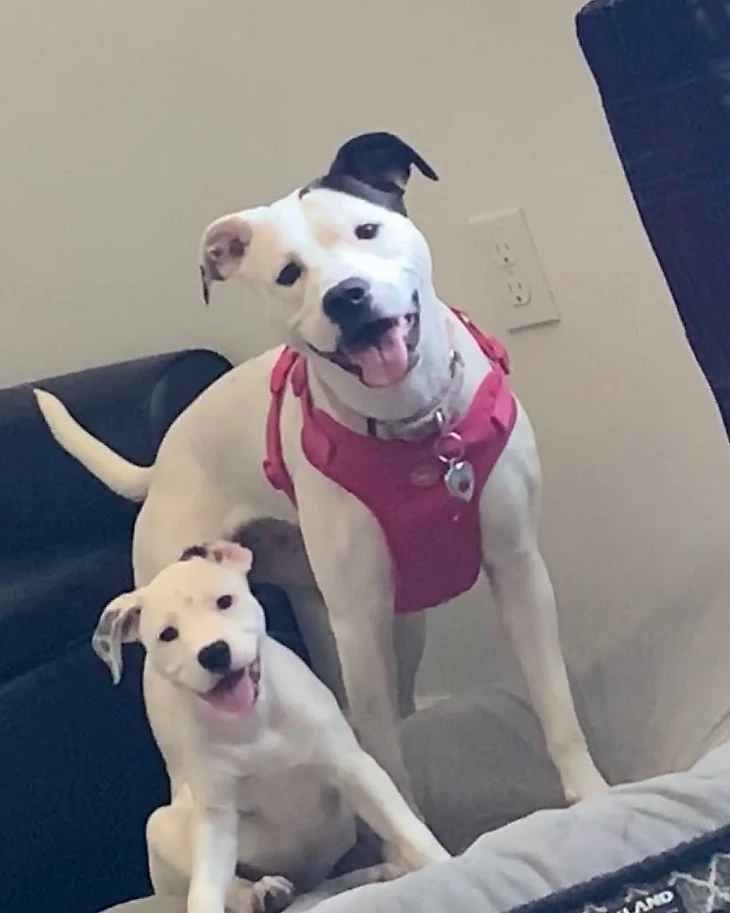 В мае этого года к семье Батлеров присоединилась Реми. Обе собаки – помесь боксера и питбуля.