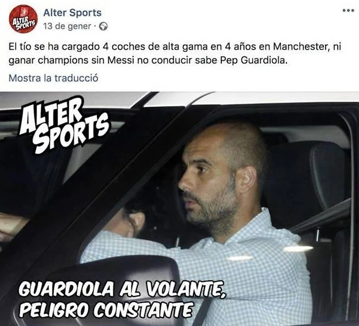 Alter Sports троллит Пепа за то, что в Манчестере он разбил 4 машины за 4 года, но не выиграл ни одной ЛЧ без Месси.