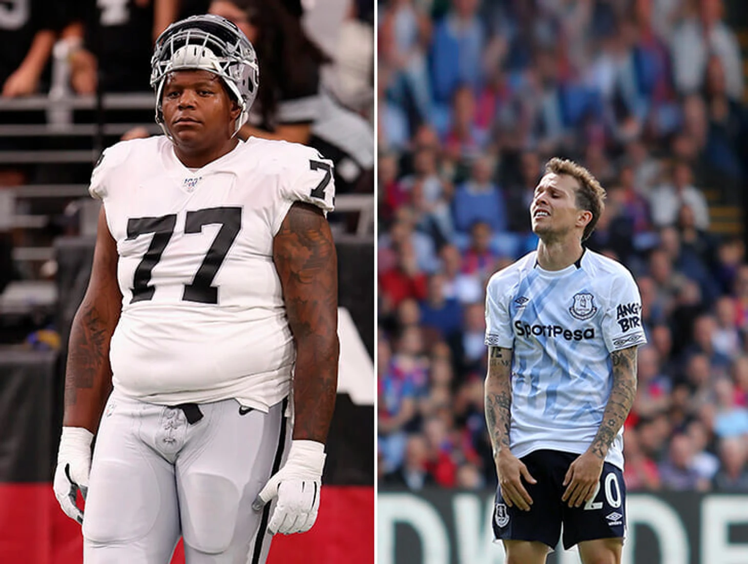 • В НФЛ четко выражены две группы: более легкие игроки, которые принимают мяч и быстро бегут (Оделл Бекхэм), и тяжеловесы, которые блокируют игроков соперника.