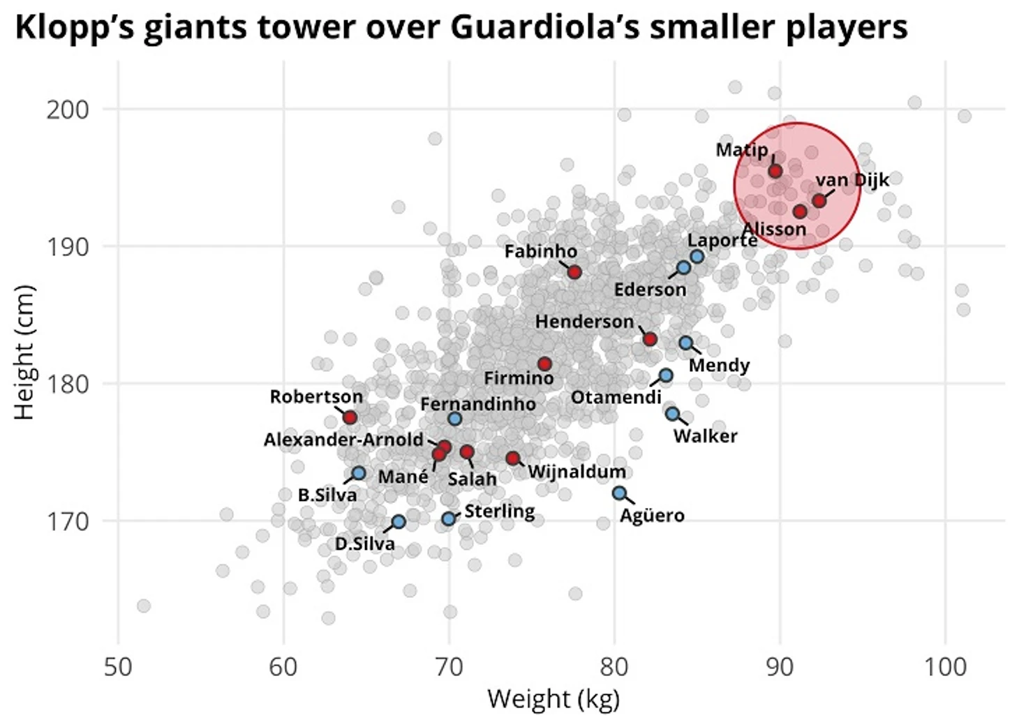 • Еще одно сравнение, которого все ждали, – «Ливерпуль» против «Сити». В составе команды Клоппа сразу три гиганта: Алиссон, Ван Дейк, Матип. У «Сити» таких нет.