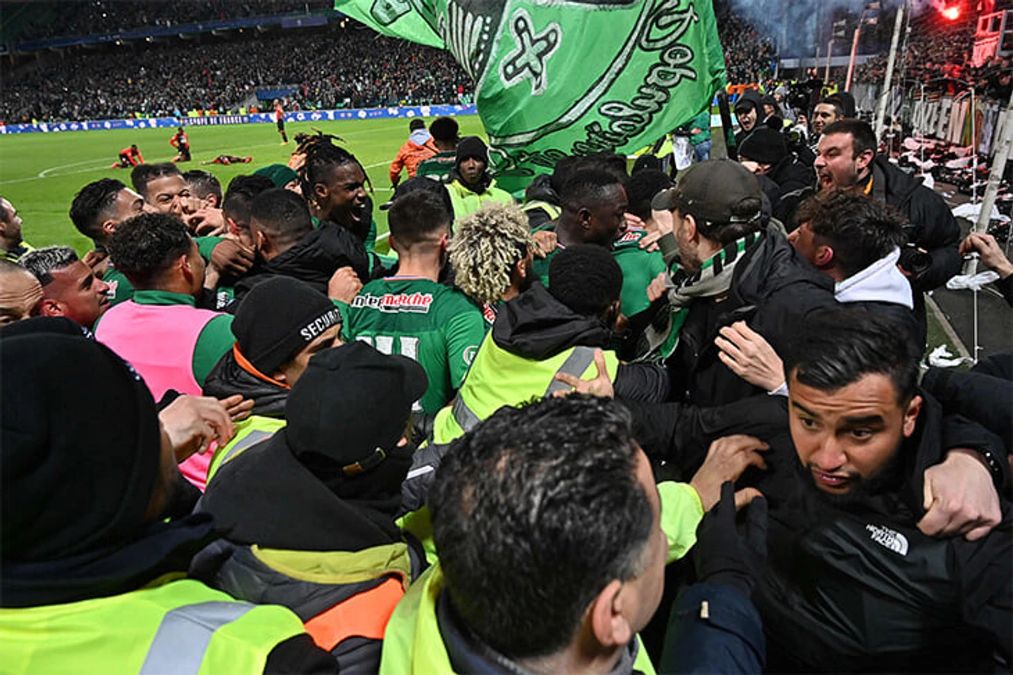 Кубковый успех особенно радостен, потому что «Сент-Этьен» проводит плохой сезон. Команда вылетела из Лиги Европы, осенью сменила тренера (теперь командой рулит знаменитый Клод Пюэль) и несмотря на кучу известных имен в составе (Кабай, Дебюши, Мвила, Хазри, Салиба) всерьез рискует вылететь (от переходных матчей – всего 2 очка). Из последних 12 матчей в лиге 1 «Сент-Этьен» проиграл 9, в том числе – в дерби «Лиону» в прошлые выходные. Там болельщики обеих команд тоже отличись, устроив потасовки и беспорядки.