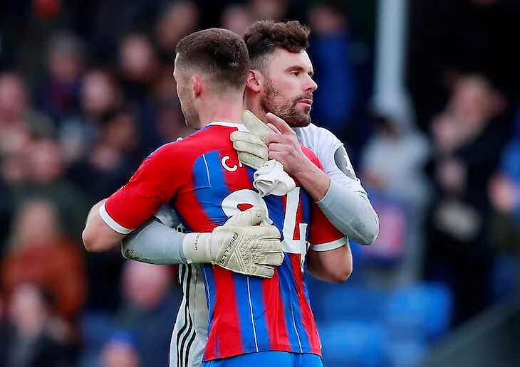 Гари Кэйхилл («КП») обнимается с Беном Фостером («Уотфорд»).