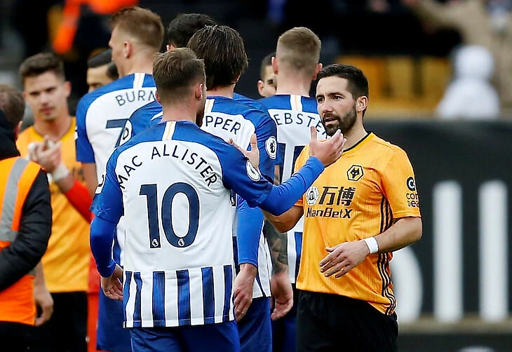 А вот фото после матча «Брайтона» и «Вулверхэмптона». Алексис Мак Аллистер как обычно пожимает руку Жоао Моутинью.