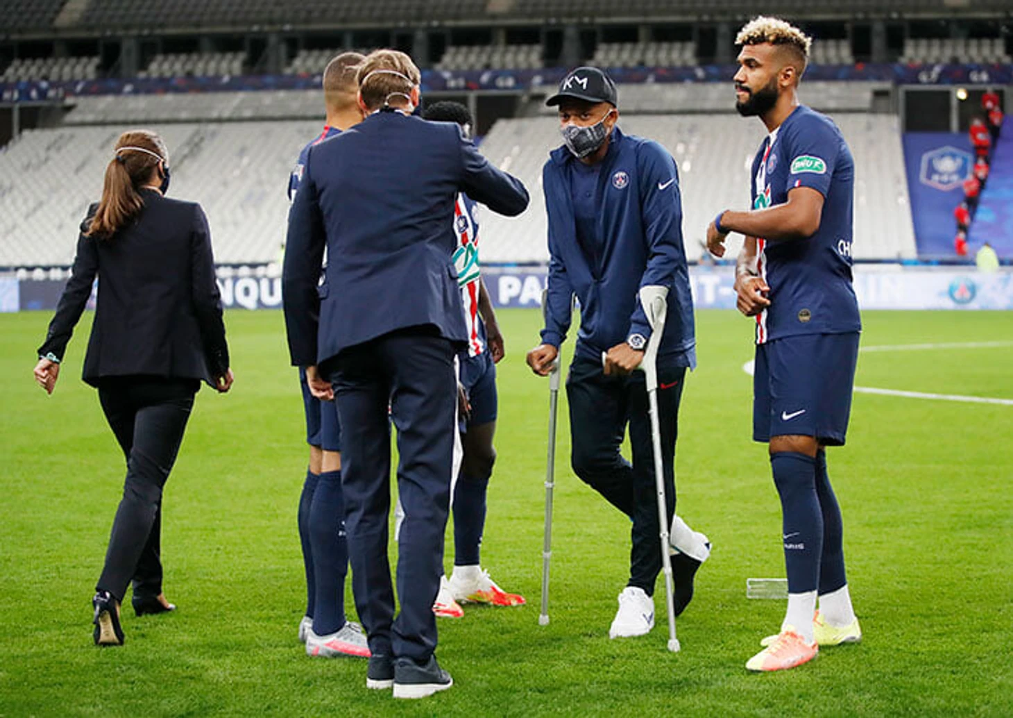 А Мбаппе потом вернулся на скамейку: в защитной лангетке на ноге и на костылях. Насколько серьезна травма, пока информации нет.
