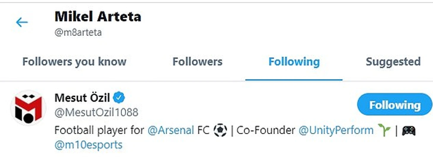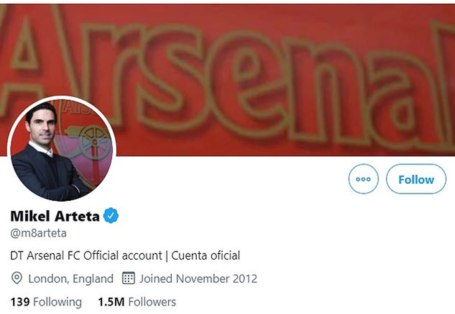 На самом деле, у Артеты есть верифицированный аккаунт, на который подписано 1,5 млн. А Озил один из 139 человек, на которых подписан сам тренер.
