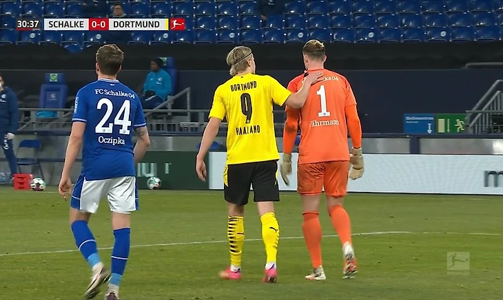 Эрлинг Холанд снова хорош – дважды забил и был активен в прессинге. Собственно, проблемы «Шальке» начались именно после давления норвежца на вратаря: Эрлинг прибежал, чуть не отобрал мяч у Ральфа Фэрманна, кипер выбил, но поскользнулся и получил травму – заменили на 32-й минуте.