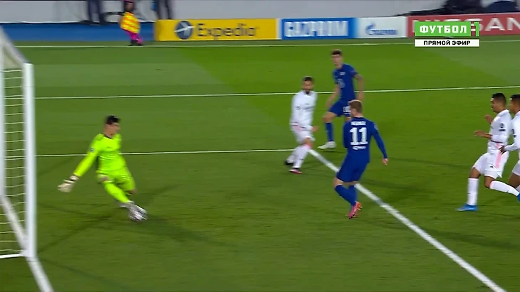 Идеальная позиция, немец качественно попал по мячу, но оставил его по центру – длинноногий Тибо Куртуа спас «Реал».