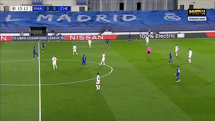 Все началось с прохода Мэйсона Маунта на 10-й минуте. Полузащитник ловко прокинул мяч в центре поля мимо выдернувшегося Эдера Милитао, дошел до штрафной, убрал под правую, но удар заблокировал Лука Модрич. Получилось даже опаснее – мяч прилетел к Кристиану Пулишичу, который аккуратно скинул на Тимо Вернера.