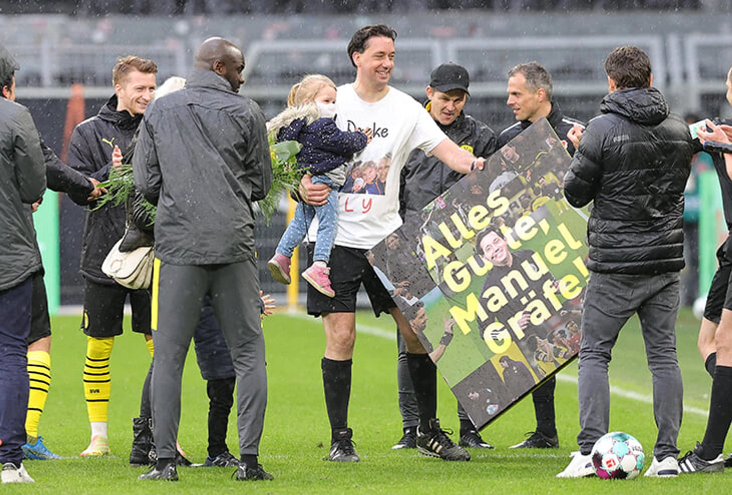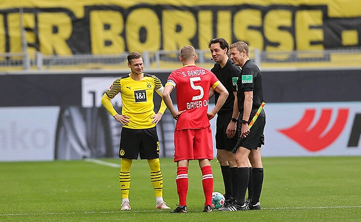 Матч «Боруссии» и «Байера» был не только завершением тяжелейшего сезона. Главный судья Мануэль Грефе проводил последнюю игру в Бундеслиге. Грефе 47, это предел для арбитра в Германии – дальше Немецкий футбольный союз (DFB) запрещает работать в профессиональных турнирах.