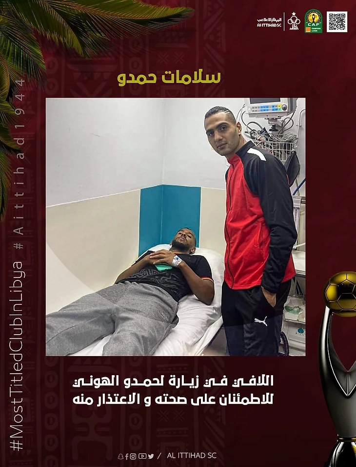 Надо заметить, что Эллафи вместе с президентом «Аль-Иттихада» заехал в больницу, куда поместили соперника, и извинился перед ним за столкновение. Тем более что Эль-хуни – ливиец, и они вместе играют за сборную.