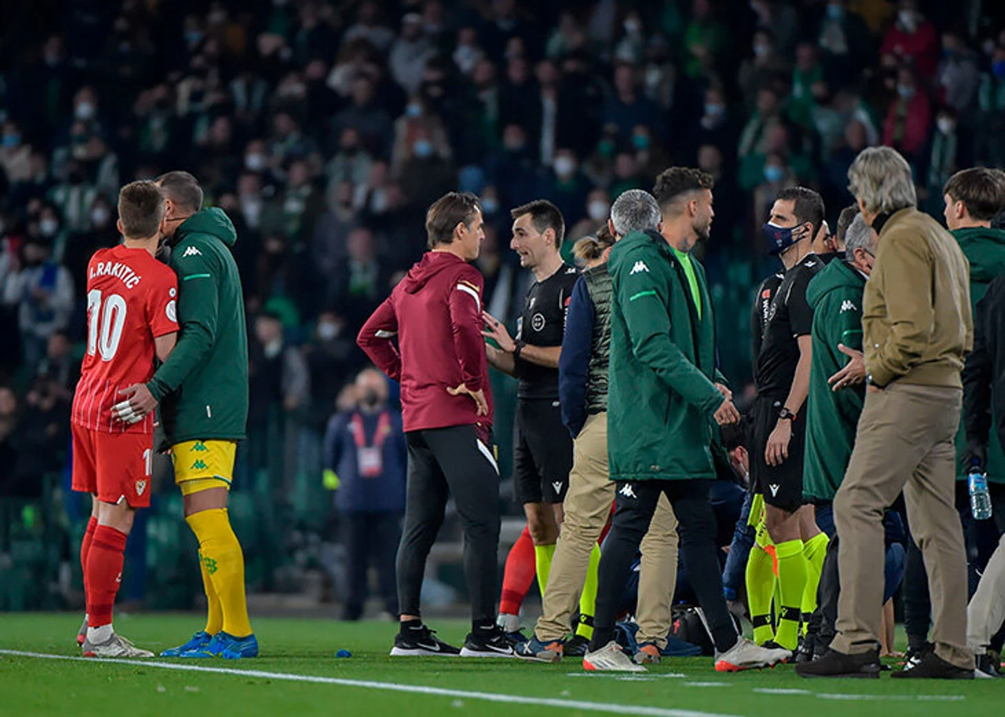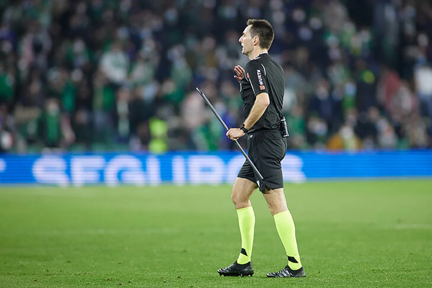 На 40-й минуте, сразу после ответного гола «Бетиса» (Набиль Фекир сделал 1:1 прямым ударом с углового), в кадре трансляции вдруг появился главный судья Рикардо Бенгоэчеа с внушительной палкой в руке.