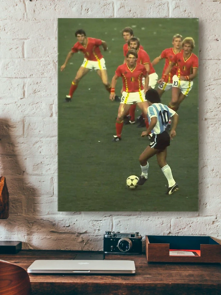 13 июня 1982 года. Чемпионат мира в Испании. Марадона морально утверждается над бельгийцами – соперник боится и выставляет против юного аргентинца полкоманды. Именно это мы видим на фото.