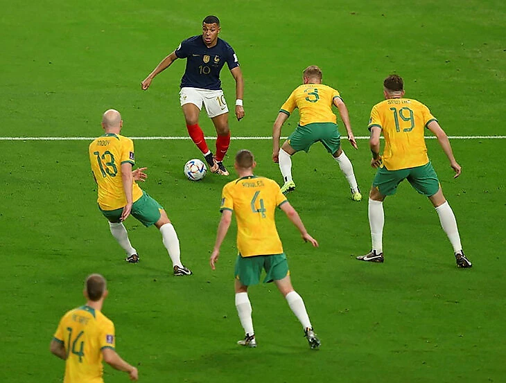 А еще фотографу Стефену Маккарти удалось поймать кадр, где Мбаппе в окружении сразу пяти австралийских игроков, – и это выглядят очень впечатляюще.