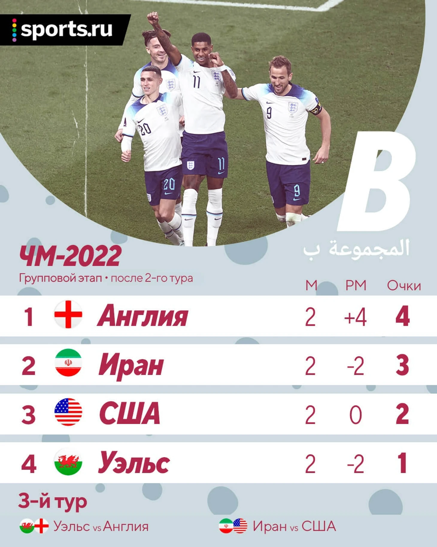 1 (победы Ирана и Уэльса). Чтобы обойти Англию, Уэльсу нужно побеждать с разницей от 4 мячей.