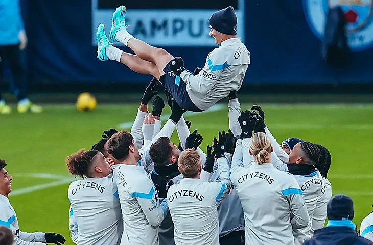 • Еще один герой Аргентины на ЧМ-2022 – форвард Хулиан Альварес. Партнеры по «Ман Сити» раскачали аргентинца на руках.