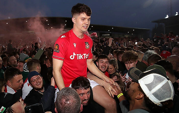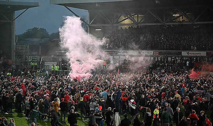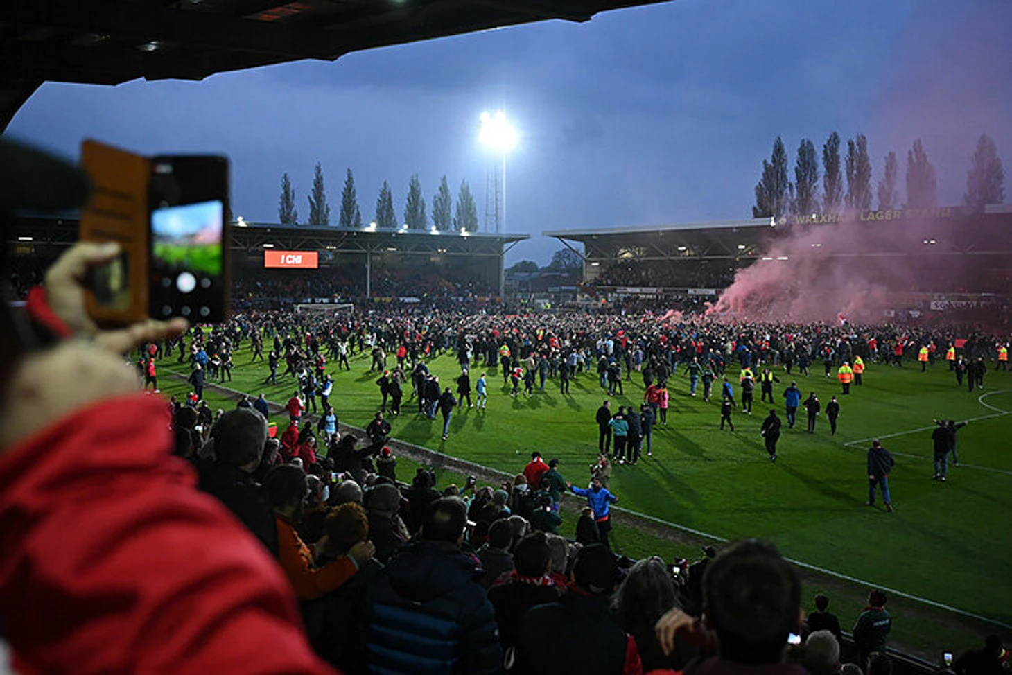 После финального свистка стадион охватило ликование. Фанаты выбежали на поле, а голливудские актеры Райан Рейнольдс и Роб МакЭлхенни, совладельцы, не верили своему счастью.