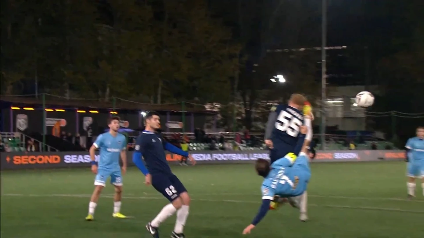 А в середине первого тайма едва не случился нокатут. Капитан Fight Nights Камил Гаджиев в попытке пробить через себя в падении ударил по голове Янбаеву. Ренат упал, но игру продолжил.