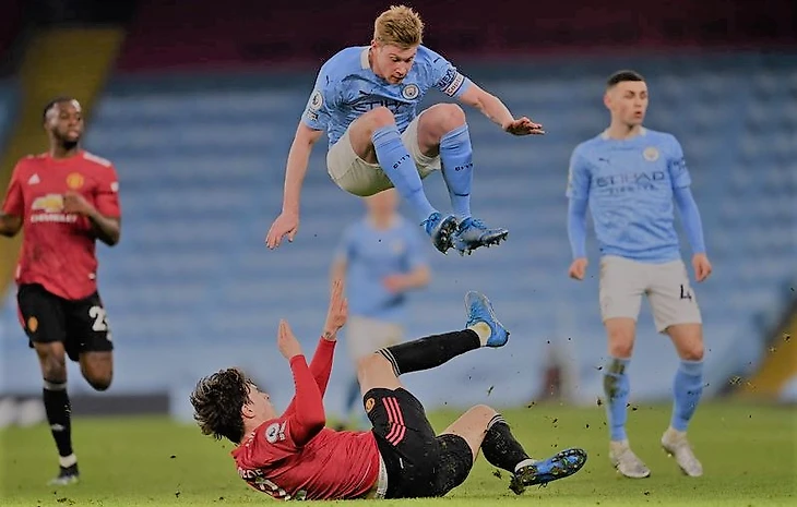 Начало второго тайма строго сигнализирует о том, что Ман Сити телепортировался в ноябрь 2020 года, потому что счёт уже 2-0 не в пользу горожан. И вот почему нету этого инстинкта Баварии, чтобы взять и растереть соперника в 4-2!? Вместо этого бесконечное перекатывание мяча по флангам через середину поля и никаких проходов или ударов из-за штрафной. На дерби специально не вышел Де Гея, но это по итогу оказалось плюсом для соперника. Хендерсону особо трудно не пришлось, хотя был мощный удар Зины из-за штрафной. Сити временами висел на воротах при угловых, но так и не смог сделать хоть что-нибудь страшное против Ман Юнайтэд. Стерлинг был бесполезен, а Марэз не был успешен в своих закрутках на правом фланге. Кевин Де Брюйнэ (нам нужно поговорить о Кевине) как-то медленно договаривается о новом контракте, и, возможно, это мешает ему быть на поле в полном объёме и не мешать другим проявлять себя по максимуму. С тех пор, как вернулся КДБ, Илкай Гюндоган перестал сотрясать стратосферу своими перформансами. И как не хватало Бернарду Сильвы и даже Феррана Торрэса!!