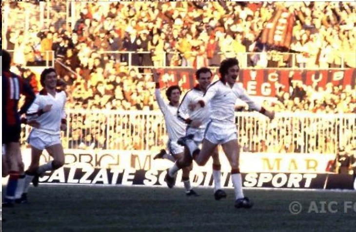 Мальдера после гола в ворота Маурицио Мемо. 14 января 1979 года. Чемпионский сезон "Милана".