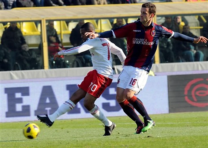 Робиньо забивает гол хозяевам «Далль 'Ара». 12 декабря 2010 года. "Болонья-Милан" 0:3.