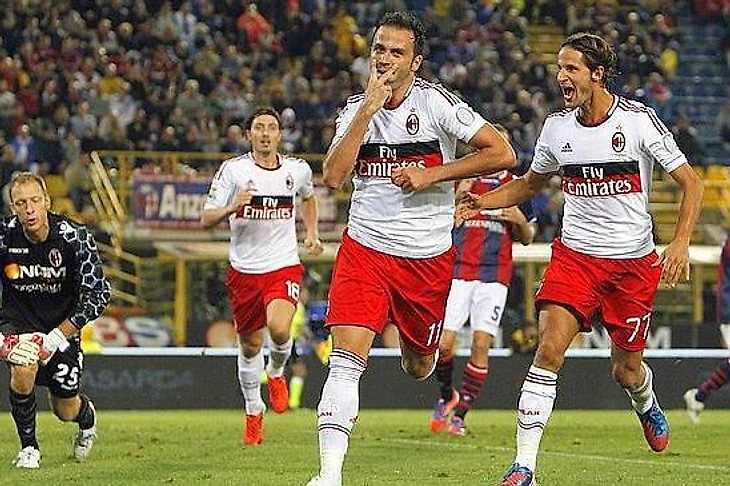 Марко Ван Бастен реализует пенальти на 87 минуте и устанавливает итоговый счет. "Болонья-Милан" 1:4.