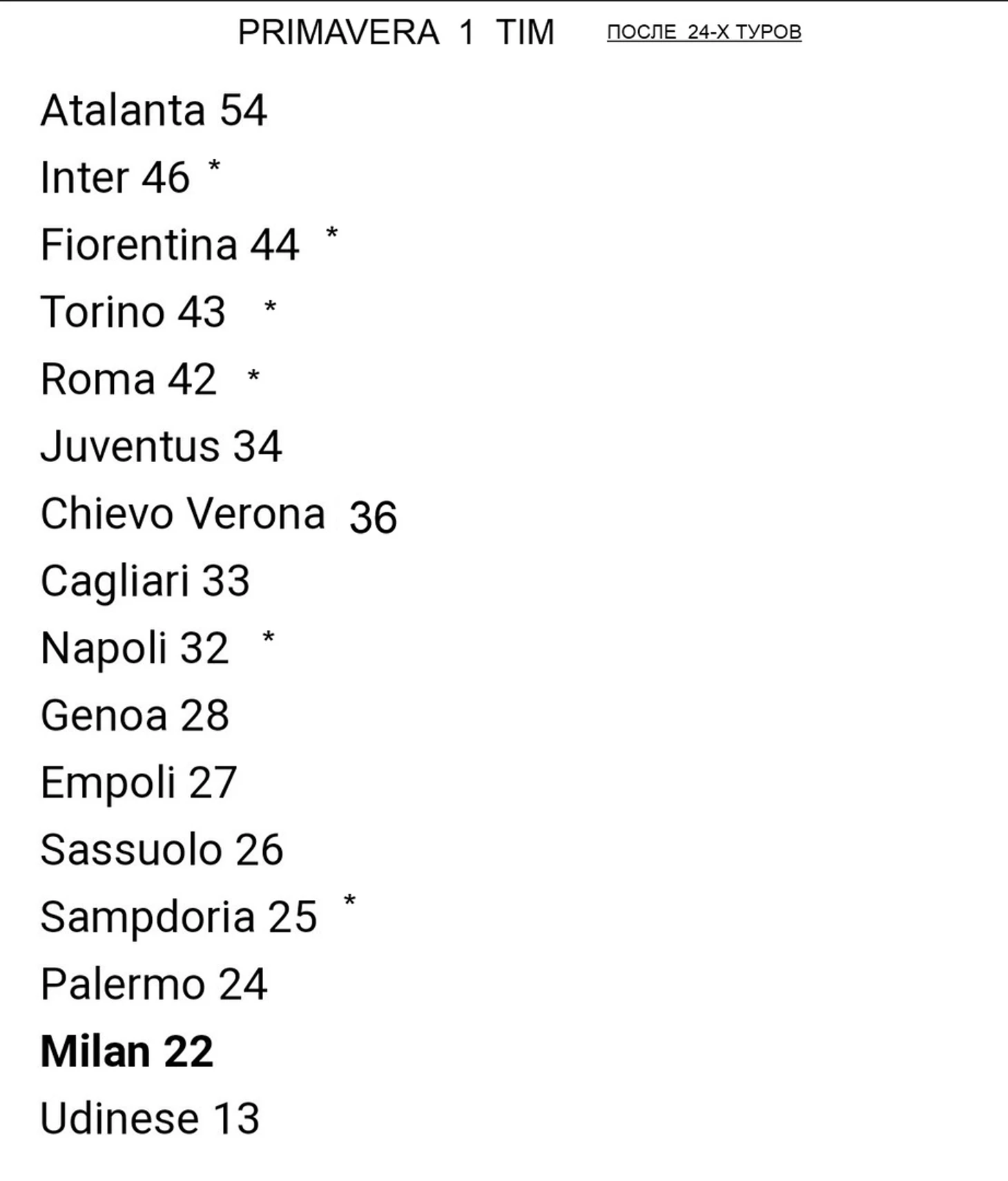 Молодые "россонери" выдают жуткие результаты, дерби против действующих чемпионов страны прошло в острой борьбе, но более сильный противник взял три очка. Хорошая физическая форма и , поставленная чёткой работой Армандо Мадонны, игра "Интера" выглядит особенно впечатляюще на фоне унылой команды Джунти, если бы не действия Плиццари, то "Милану" грозил полный разгром. После поединка защитник красно-чёрных Тьягу Джало в соцсетях вступил в горячие споры с одним из фанатов, попытавшись урезонить болельщика и пожелав мощной поддержки взамен упрёков. Критика в адрес новичка из Португалии, выбранного в качестве главного антигероя столкновения с "кузенами", вполне заслуженна, от http://www.mondoprimavera.com Джало получил низкую оценку, проведя очередной неудачный матч. Лучшими по оценкам экспертов в составе проигравших признаны авторы голов и Даниэль Мальдини, а сразу два "интериста" вошли в символическую сборную по итогам тура (Томас Широ и Факундо Колидио). Линия обороны "миланистов" не самоя большая беда, никудышная реализация моментов - настоящий бич Примаверы Дьявола. С этим не сможет справиться ни один наставник в мире, к сожалению.