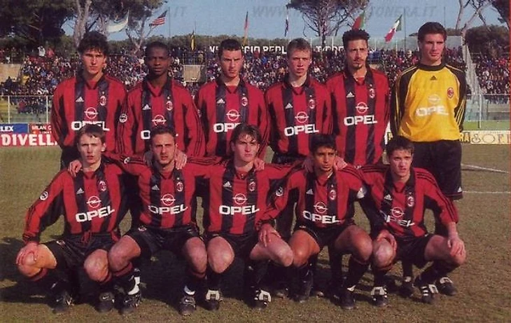 Форвард Алиу Датти перед финалом Кубка Виареджо ( 15 февраля 1999 , Милан-Вартекс 1:0) в составе Примаверы, второй справа в нижнем ряду капитан – Самир Белуфа.
