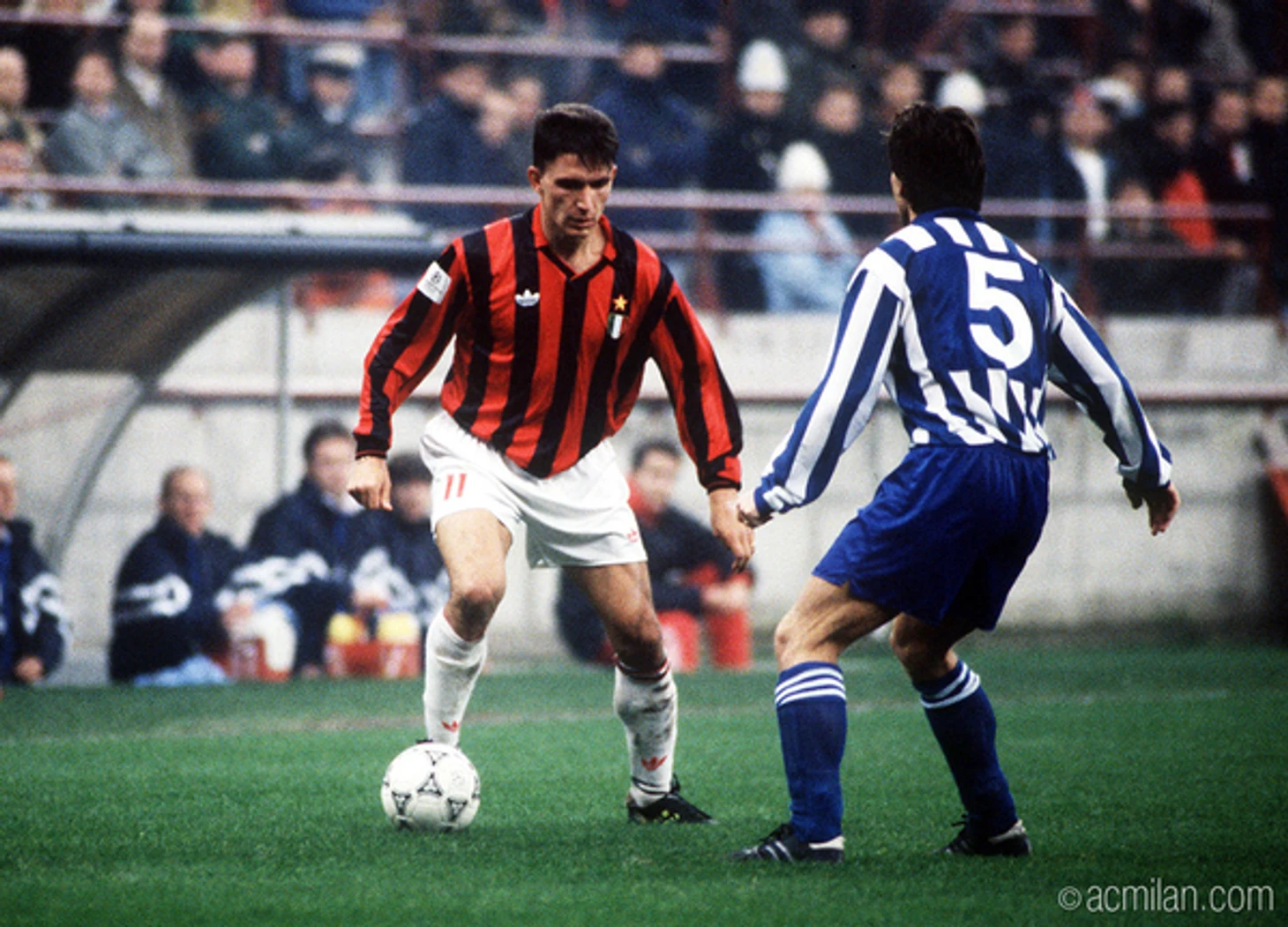 Первый эпизод. Домашний «Сан-Сиро»: 17 марта 1993 года, матч Лиги чемпионов против «драконов» с родины всемирно известного вина и решающий, мощный удар в первом тайме от полузащитника миланцев, «прошивший» Витора Байю — успех — 1:0 , а затем досрочный выход из группы в финал турнира непобедимой банды Железного Дона Фабио.