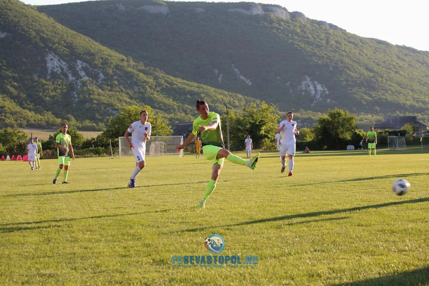 Вынос воротчега - мяч, скакнув по двум евпаторийским жбанам, оказался у нападача, тот касашкой убрал защитника и сделал голевую - (1-2). Нокдаун для севастопольцев под заначес игры.
