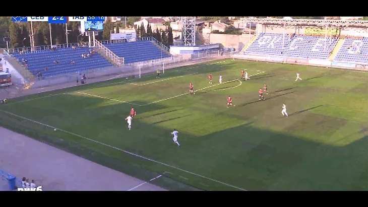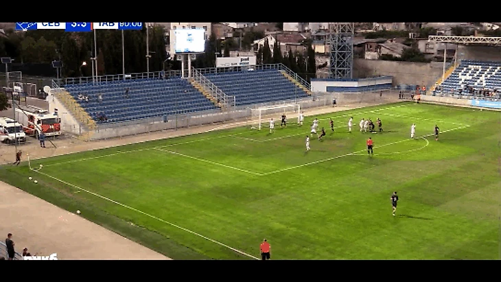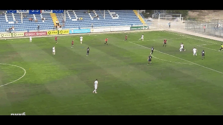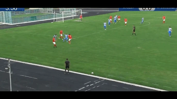 Резвый атакер Кызылташа выскочил из за защитных спин и вогнал в краску вратаря Инков (1-1 Кызылташ). Когда-то же мяч должен был залететь в сетку.
