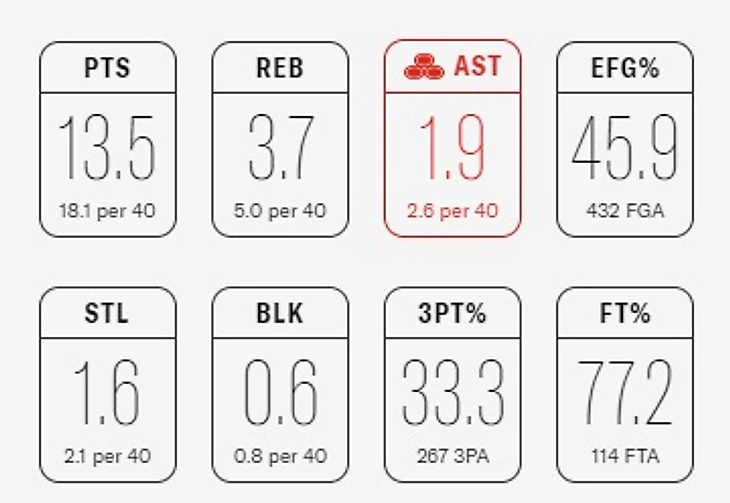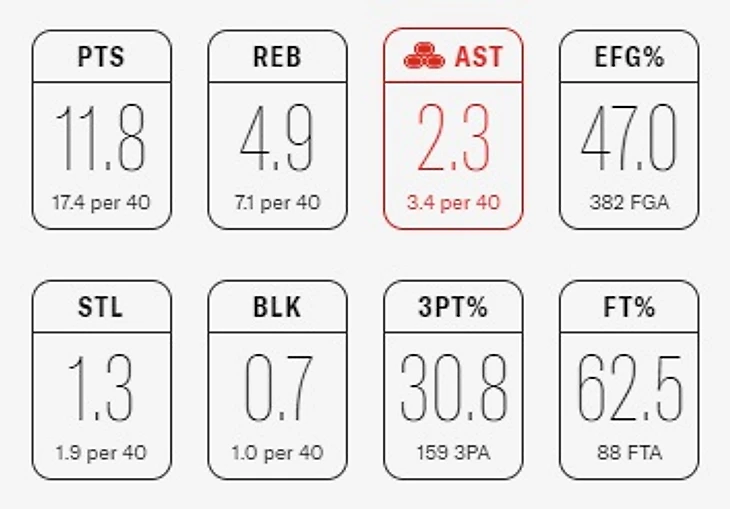 Атлетичный, чудесный и умный плеймейкер, которому необходимо развить джампшот и поработать над потерями, чтобы раскрыть свой истинный звездный потенциал.