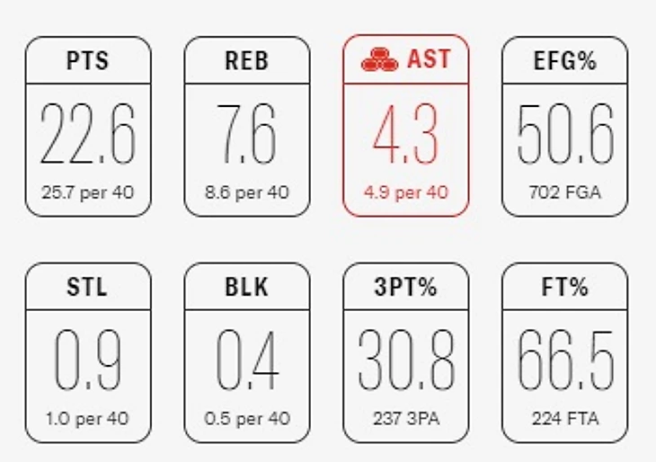 ·         Стал гораздо лучше создавать себе моменты; может прямо пройти к кольцу, забить несложный пулл-ап бросок, или даже поработать в посте.