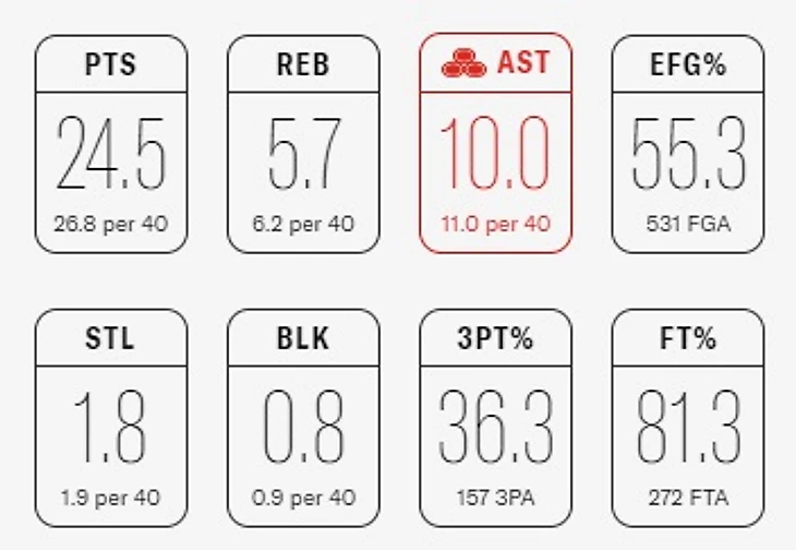 ·         Распасовщик-энерджайзер, создает моменты для броска партнерам благодаря скорости и ловкости рук, а затем отдает аккуратнейшие передачи с ведения с любой руки.