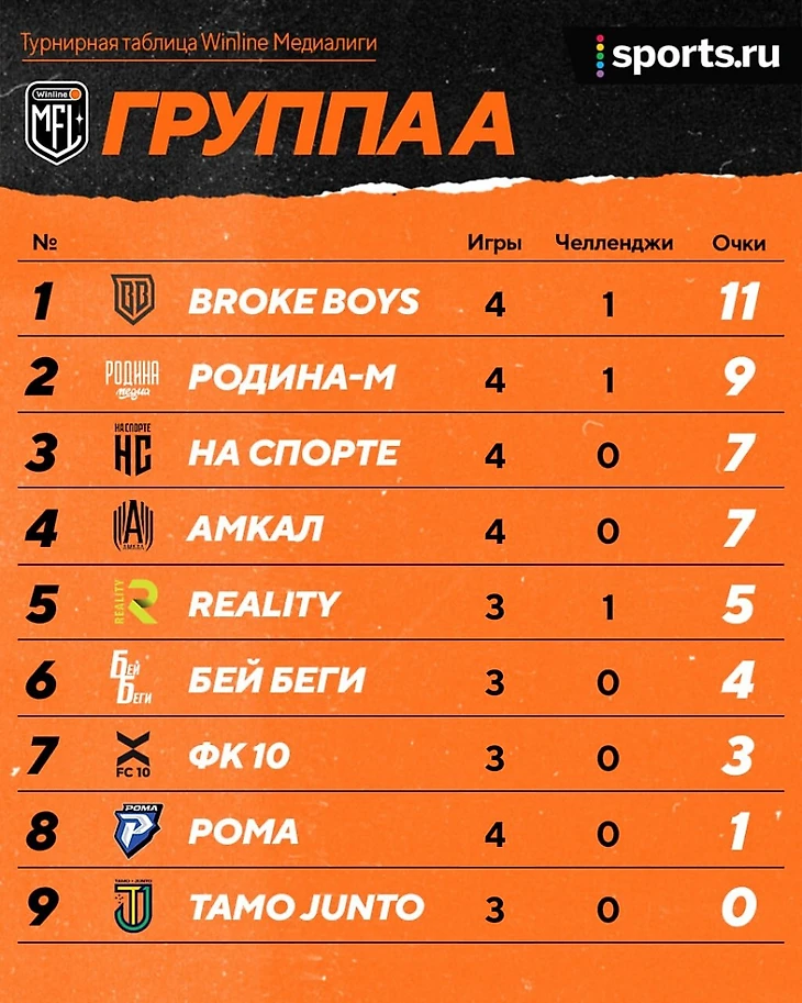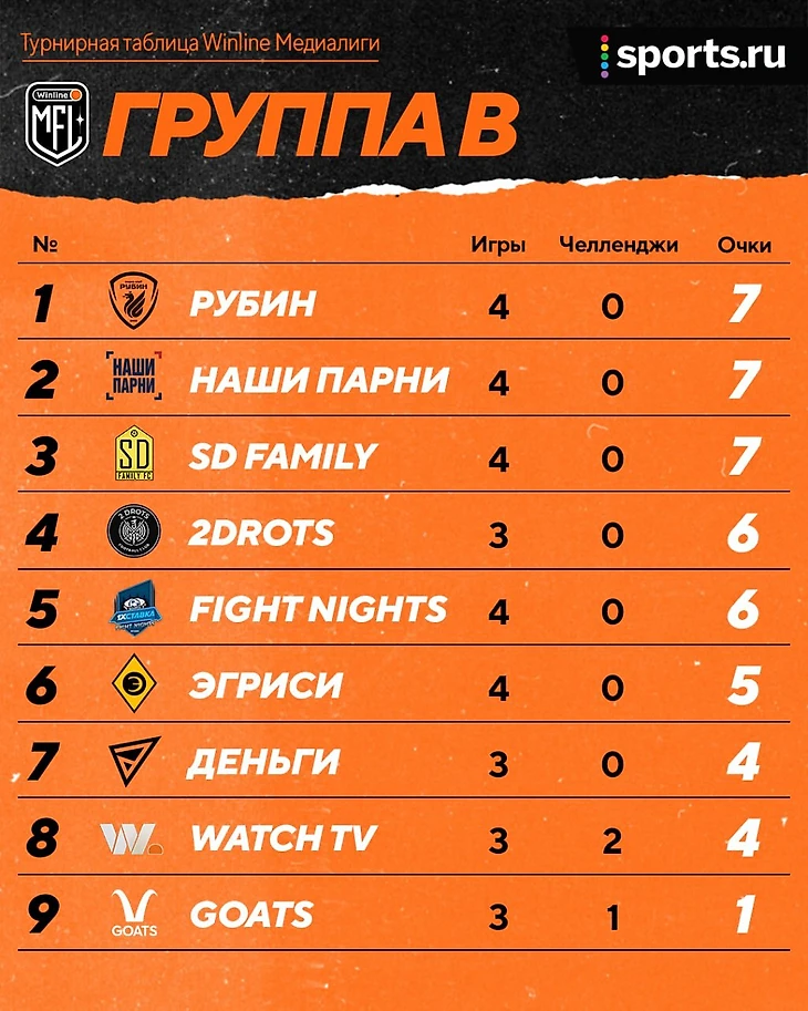 • В группе B высочайшая плотность: первое и восьмое места разделяют всего 3 балла. «Деньги» в случае победы догонят «Парней», которые идут в группе лидеров.