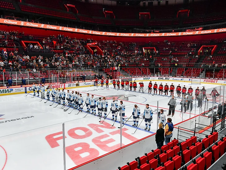 Матч посетили только 1800 зрителей – арену тестировали еще не на полную мощность: каждый владелец абонемента на матчи «Авангарда» в КХЛ мог оформить до двух пригласительных.