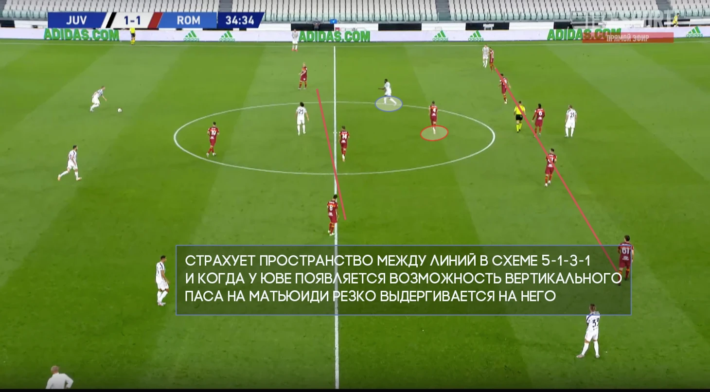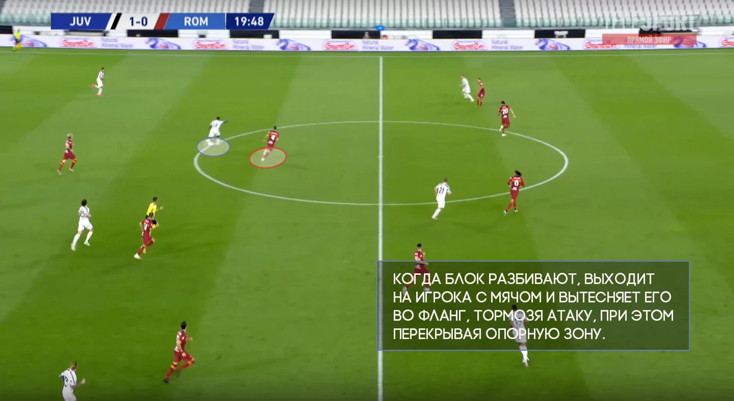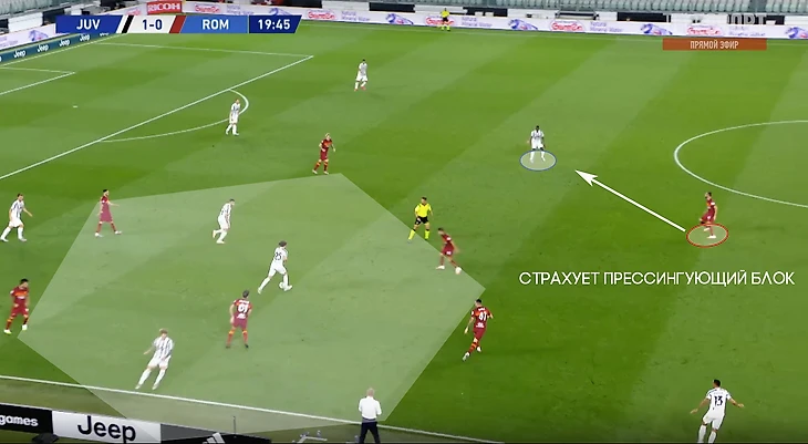Рома умеренно и организованно включает высокий прессинг. За сезон 19/20 имеет 9 результат по интенсивности давления, имея показатель выше среднего по лиге.