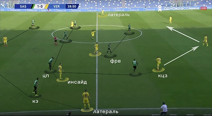 И еще один похожий эпизод с забросом и потенциальным перегрузом дальнего фланга от «Вероны»: