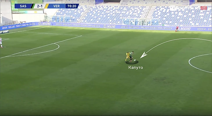 Ранний гол всегда сказывается на характере матча в той или иной степени, но по первым минутам игры складывалось впечатление, что и без него «Сассуоло» действовал бы примерно в похожей манере – отдал инициативу «Вероне», обороняясь в среднем блоке. И это настораживало.