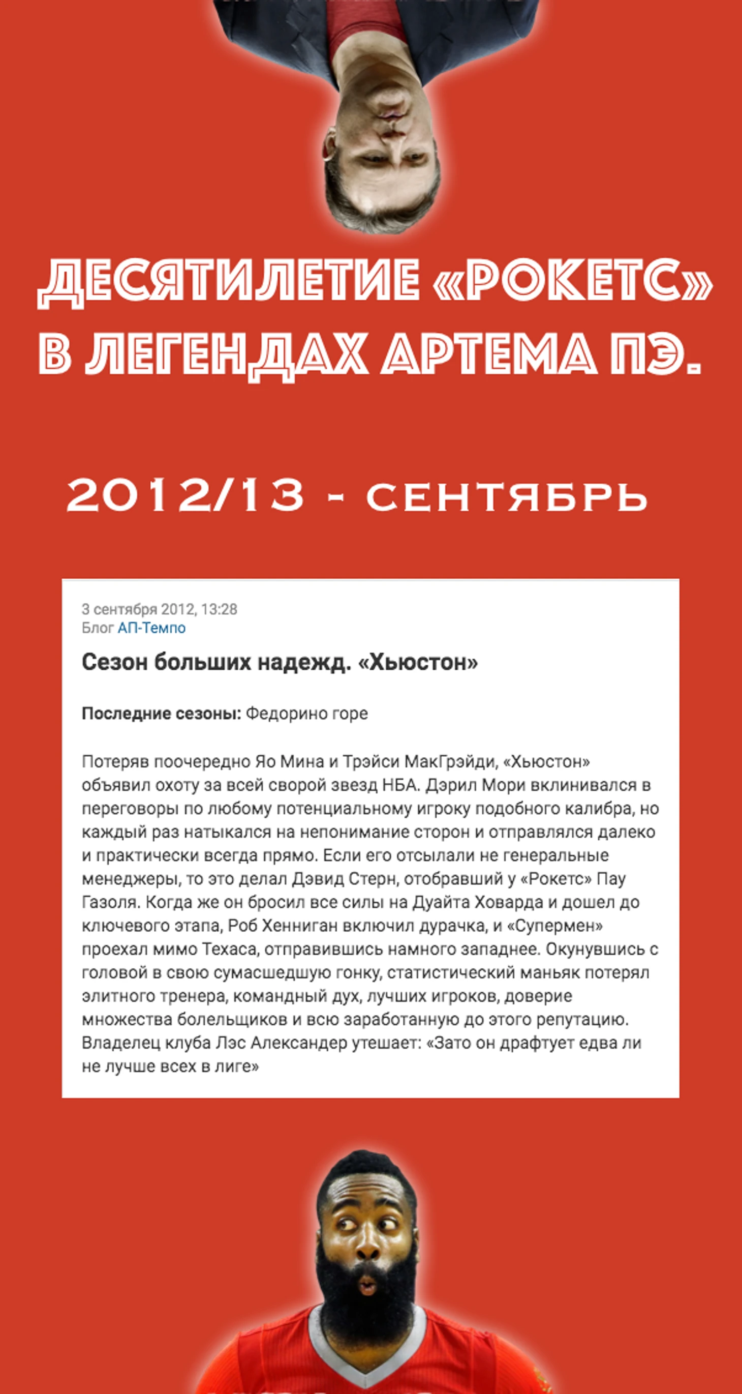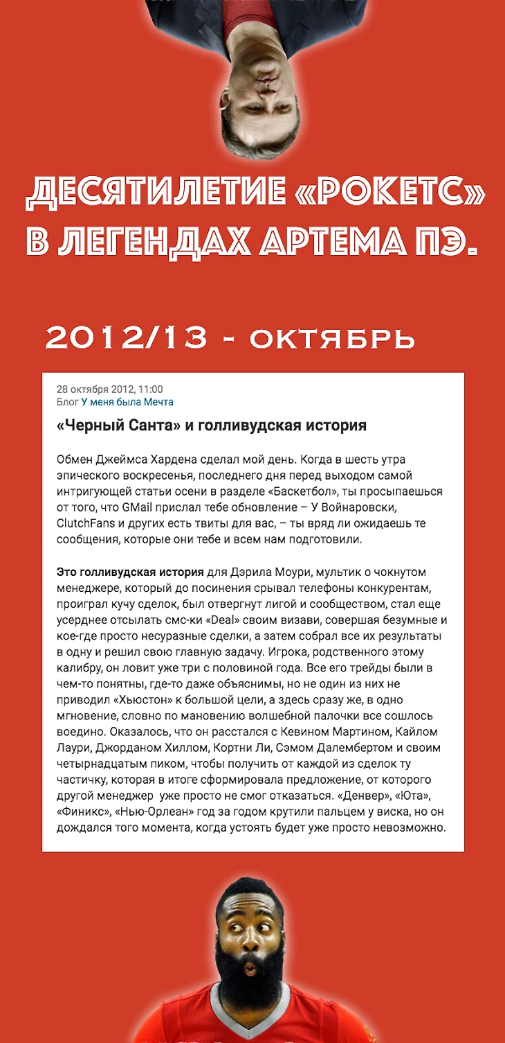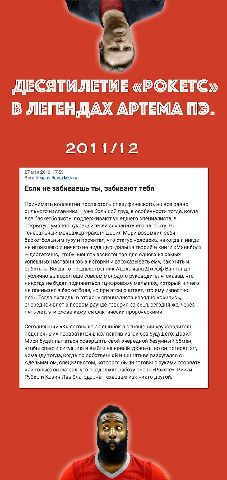 От редакции: вы читаете пользовательский блог, где любят неуместно шутить об НБА, «Хьюстоне», Артеме Панченко, то есть вещах солидных и довольно серьезных. Если вам по душе такое творчество – подписывайтесь и ставьте плюс, если нет – обсудите с авторами их чувство юмора в комментариях.
