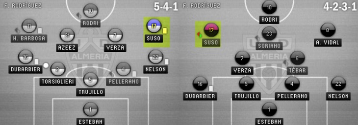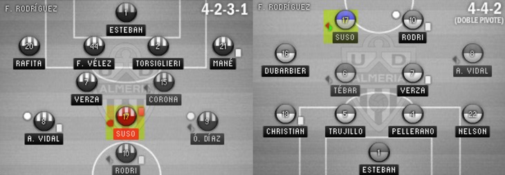 Менее заметной, но не менее важной стала еще одна особенность Сусо: в "Альмерии" под руководством Франсиско Родригеса он играл в 4 разных схемах: правого полузащитника в 5-4-1 и 4-2-3-1, центрального атакующего полузащитника в той же 4-2-3-1, и наконец второго форварда в 4-4-2.