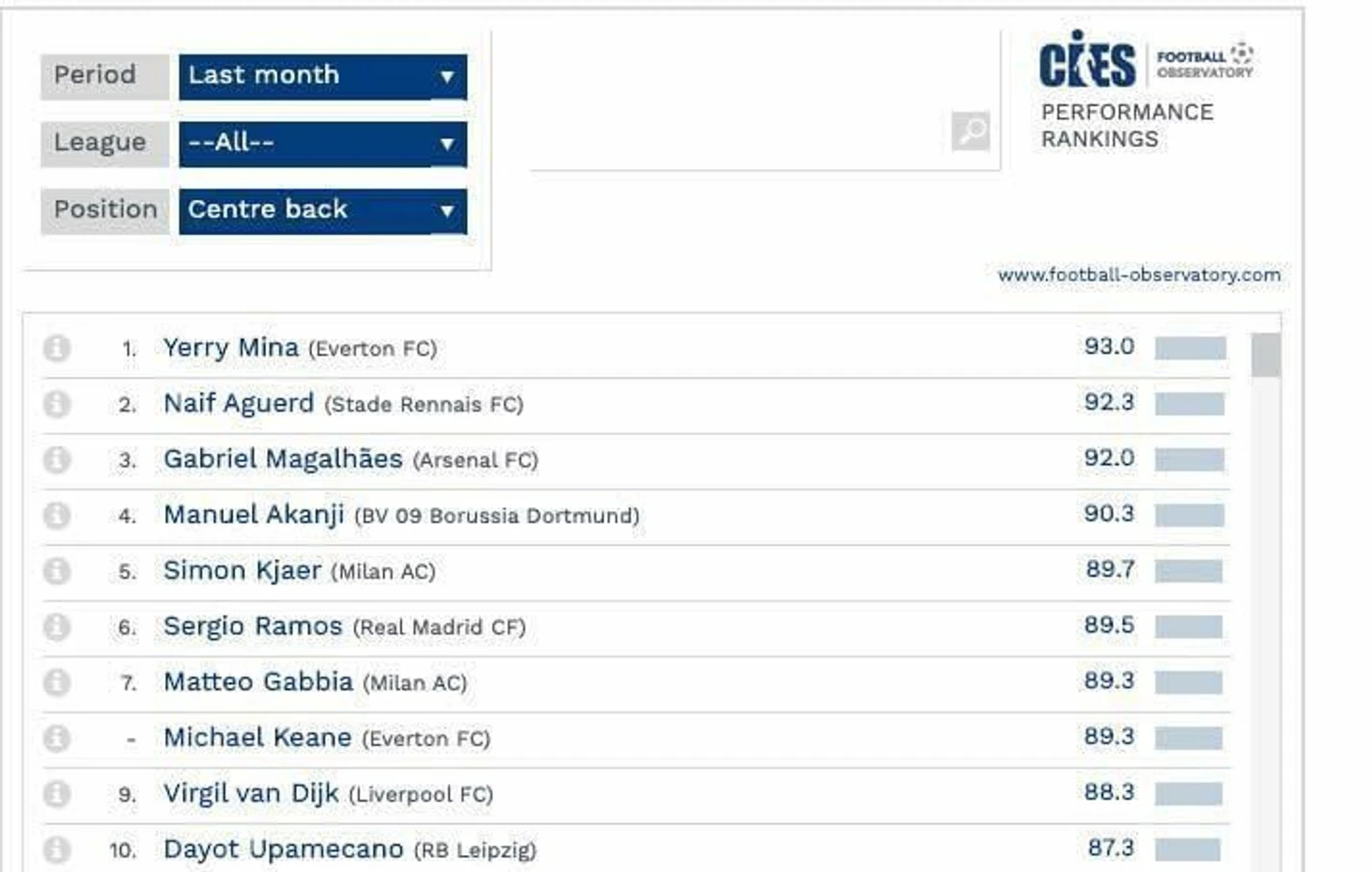 Международный центр всемирной статистики провел исследование и выявилось, что Симон Кьяер и Маттео Габбия на данный моммент 5-й и 7-й лучший ЦЗ в мире. Таким образом, можно с увереностью сказать, что Габбья сильнее Ван Дейка и Кулибали. CIES Football
