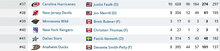 Теперь про пики. Много народу ругало Герина за то, что он совершил, но никто, НИКТО не заметил одной маааааленькой детали – Герин взял у Пойла не родной нэшвиллский пик второго раунда (№ 42), а пик от Нью-Джерси Девилс (№ 37). А пик третьего раунда – тоже не родной нэшвиллский (№ 73), а бывший пик самой Миннесоты (№ 70). То есть, Герин отдал Пойлу пик 4-го раунда (№ 101) не просто так – он хотел получить пики повыше.