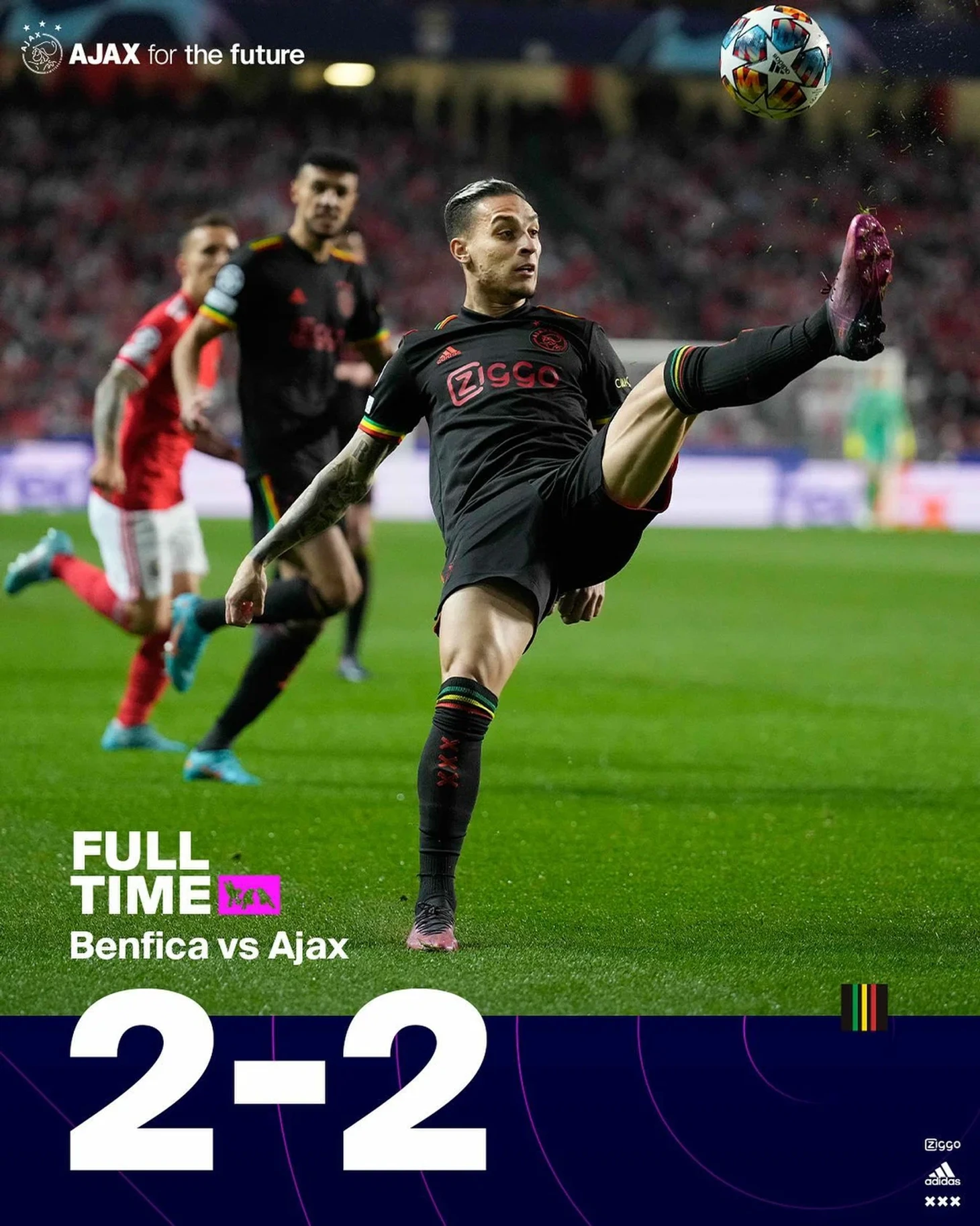 Во втором тайме игра поменялась - Аякс бежал сломя голову в атаку, Бенфика стала играть жёстче, отсюда появились очень опасные обрезки. В итоге одна из таких и привела к голу. Реально обидный был гол. Казалось бы, Пасвер вытащил, но мяч неудачно полетел в центр штрафной, где и добил его Яремчук. И только после гола Тен Хаг начал что-то менять в команде - вышел Классен, Тальяфико... вопрос - неужели не видно было раньше, что угроза гола явно назревала! В общем, в Амстердаме начинаем все с нуля... все решит один матч, где случиться может что угодно… Очень жаль, что сегодня упустили победу! "Бенфику" нельзя списывать со счётов, но игра в гостях не даёт им полного карт-бланша в этой встрече.