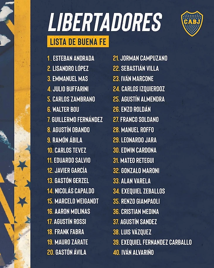 Вчера клуб опубликовал заявку на Кубок Либертадорес, все новички уже в списке: